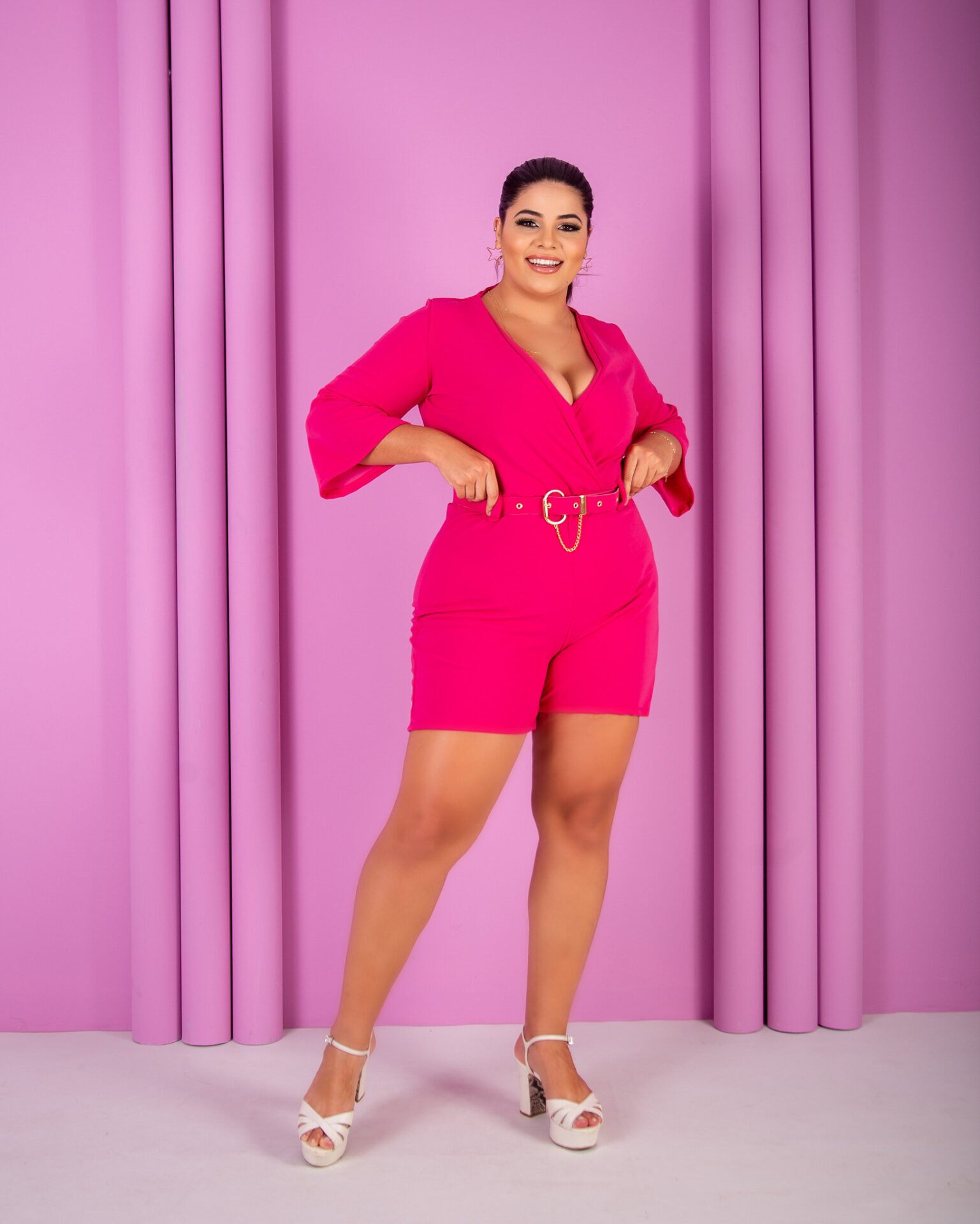 Malha scuba crepe, acompanha cinto, veste do 44 ao 48. Em 4 cores disponíveis.